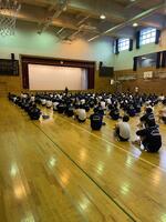 76期修学旅行の事前指導が行われました。「南から 雅な都へ おおきにを」をスローガンに修学旅行頑張ります!