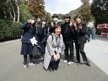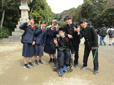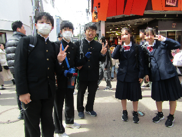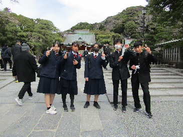 今日は2年生が鎌倉方面へ校外学習に行ってきました。今朝は冷え込む中での出発となりましたが、鎌倉方面に到着するころには天候にも恵まれ、班ごとに校外学習を楽しむことができました。スローガン「春は鎌倉 歴史を学び ルールを守ってレベルアップ」に向けて、多くのことを学ぶ一日となりました。