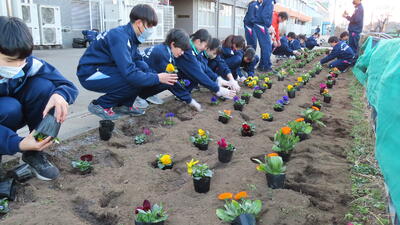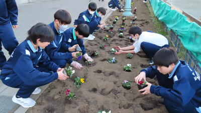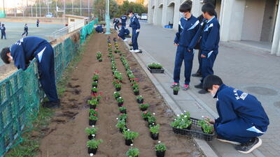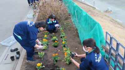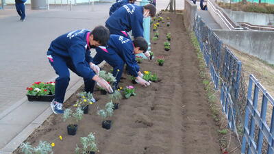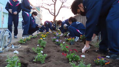 PTAよりきれいな花を買っていただきましたので、環境委員会の皆さんがバランスを考えながら植えてくれました。
