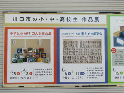 「中学生のART CLUB 作品展」「川口市小・中・高校 書きぞめ展覧会」が、川口市立アートギャラリー・アトリアで行われ、南中の生徒の作品が展示されました。