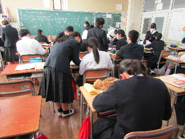 本校から、3人の先生たちが『鬼役』となり、舟戸幼稚園に行ってきました。幼稚園の子供たちは、元気に「鬼は外!福は内!」と言いながら、豆をたくさん投げていました。その後、3人の『鬼』は南中の各教室も周り、みんなで節分の雰囲気を味わいました。