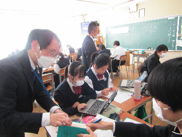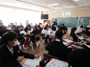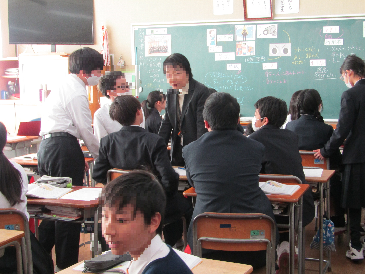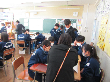 28日は、南中学校の教育活動の様子を教育委員会の方々に参観していただきました。課題解決に向けて、生徒が主体的に話合い・学び合い活動や、ICTを効果的に活用した活動に取り組んでいることが、写真を見ると分かります。これからの時代に必要な学力を高めるためには「主体的・対話的で深い学び」が欠かせません。授業後は、授業での生徒の学びはどのようであったか、一人一人の学びを一層高めるためには、どのように授業を工夫していけばよいかなどを協議し、教育委員会の方々にご指導をいただきました。