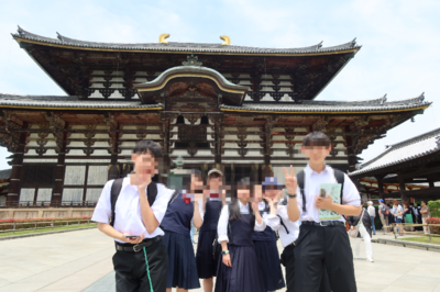 東京駅で出発式を行ったのち、京都へ向けて出発しました。東大寺、奈良公園内を班別で見学したのち、宿泊場所の「石長松菊園」に向かいました。夕食を食べ、係会議、班会議を終え就寝しました。