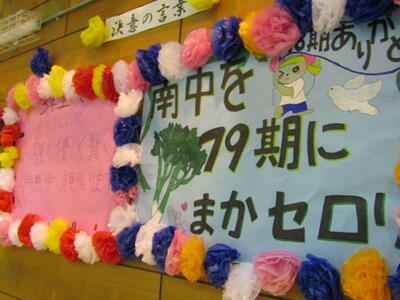 3月14日(金)に、感動的な第78回卒業証書授与式が行われました。式後は、在校生全員で卒業生を見送りました。今年度は、「フォトスポット」も設けられ、大きな卒業証書を前に記念写真を撮る姿が多く見られました。お世話になった支援員さんがバイオリンで生演奏をしてくださったり、舟戸幼稚園の子どもたちも「おめでとう!」と言いながら見送ってくれたりと、温かい思いがあふれる見送りとなりました。78期の3年生とのお別れは寂しいですが、卒業後も夢に向かって羽ばたいてほしいと願っています。79期・80期も力を合わせてこれからの南中学校をつくりあげてくれることでしょう。