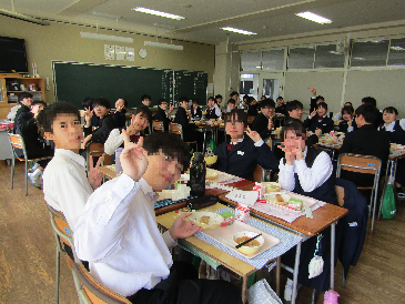 明日はいよいよ卒業式です。3年生は、中学校生活最後の給食を楽しみました。1,2年生は、明日の卒業式に向けて校舎内をきれいに掃除したり、式場設営を行ったりしました。素晴らしい卒業式になりますように・・・